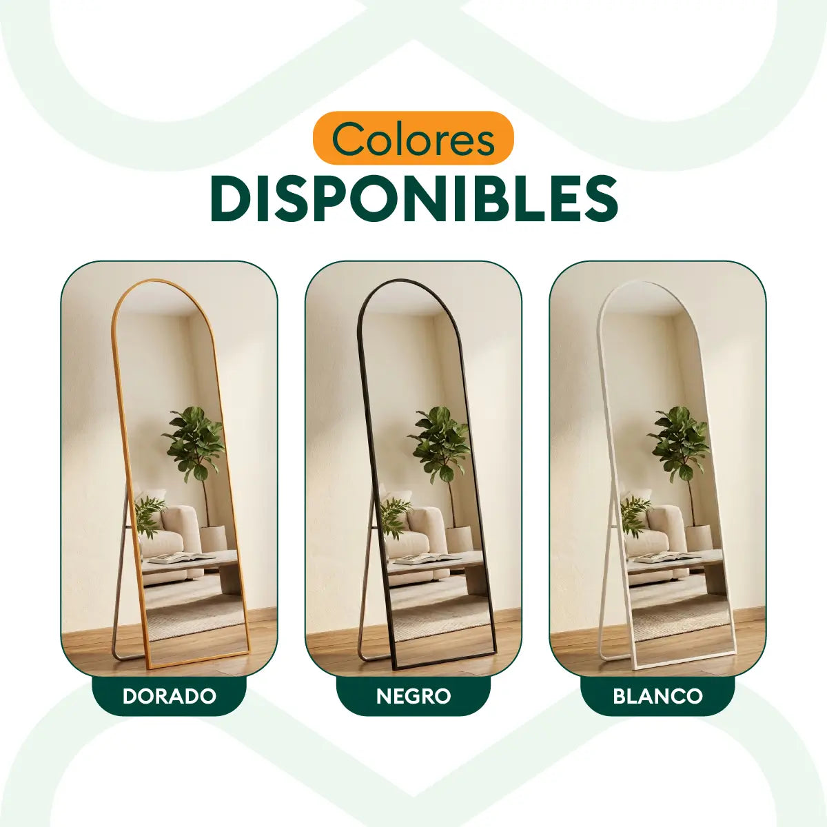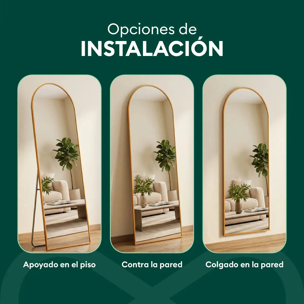 Este espejo de cuerpo entero con diseño en arco es ideal para darle amplitud, luz y estilo a cualquier ambiente. Su forma elegante permite verse de pies a cabeza, ayudando a armar tus looks con mayor seguridad y comodidad.