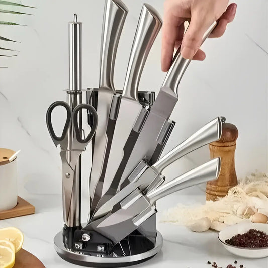 Set de Cuchillos con Base Giratoria de 8 piezas Bass