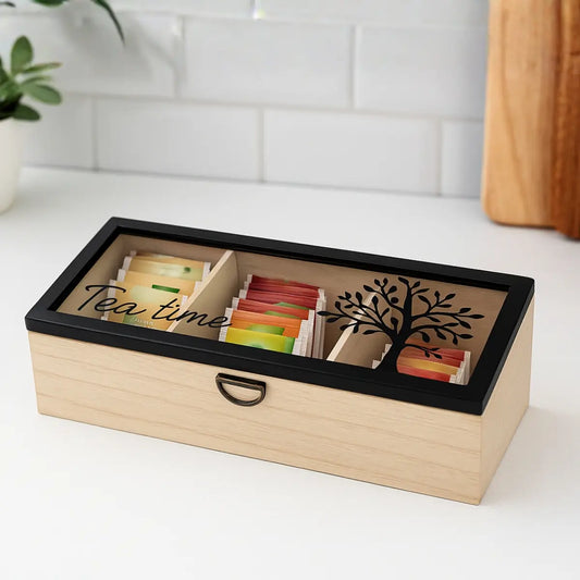 Centro de Mesa Decorativo con 4 Divisiones, Asa y Tapa de Bambú
