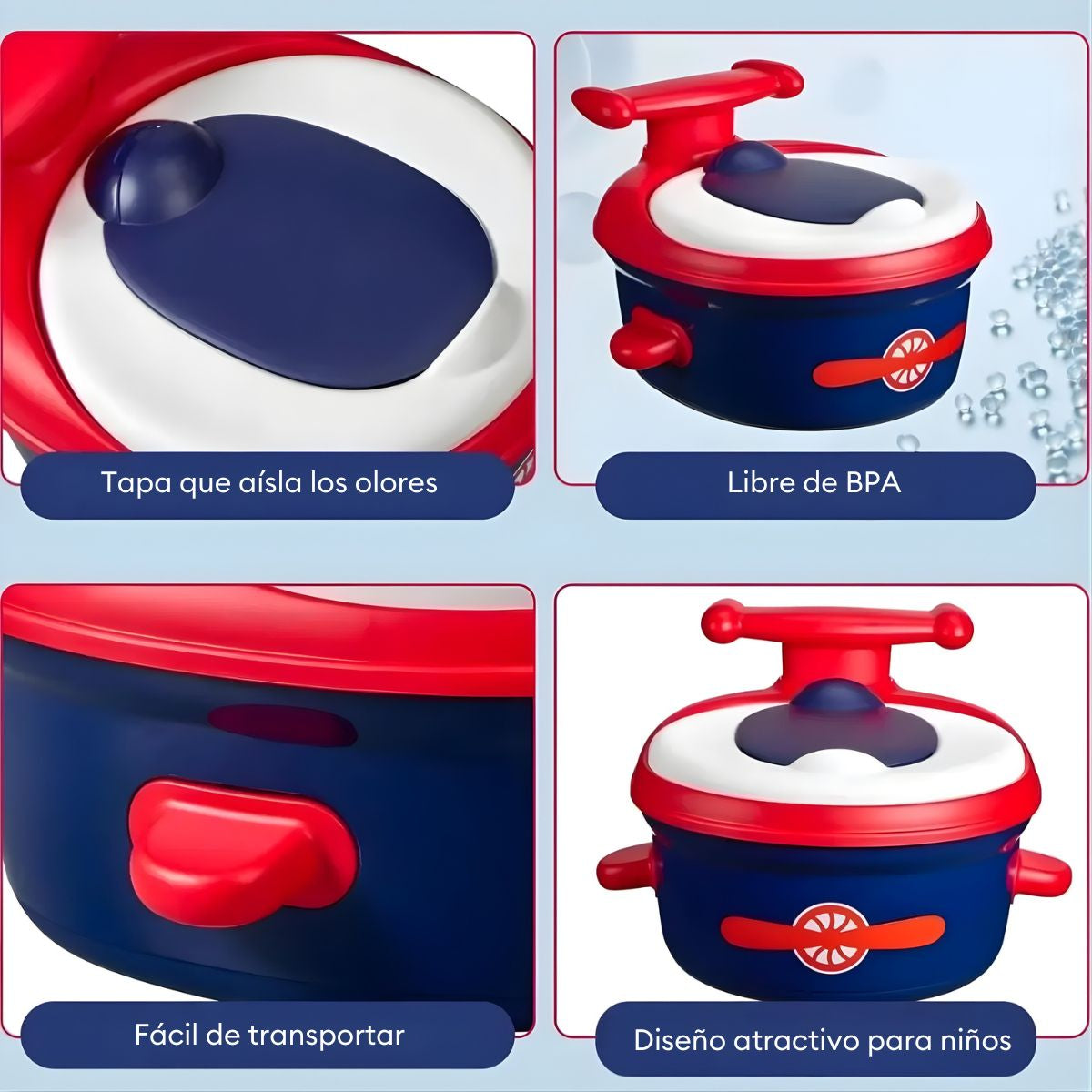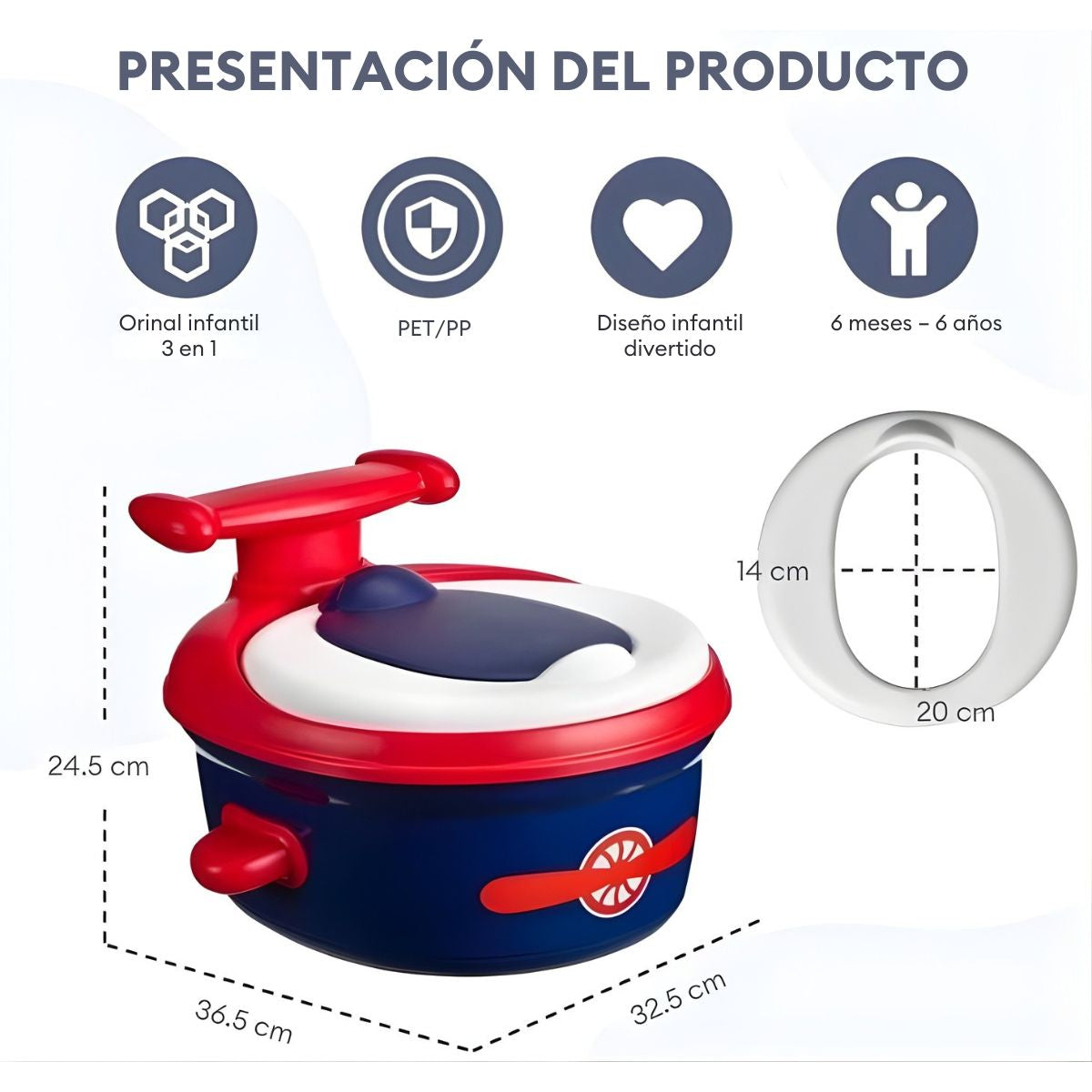 - Orinal infantil: El niño se sienta directamente; Incluye tapa y recipiente interno fácil de lavar.