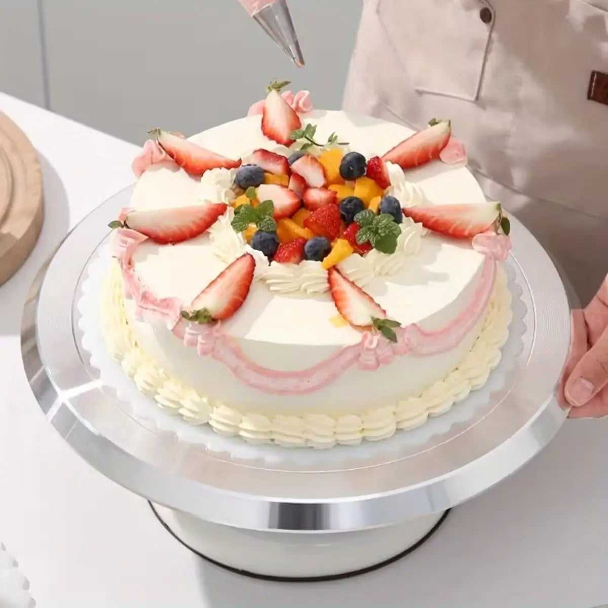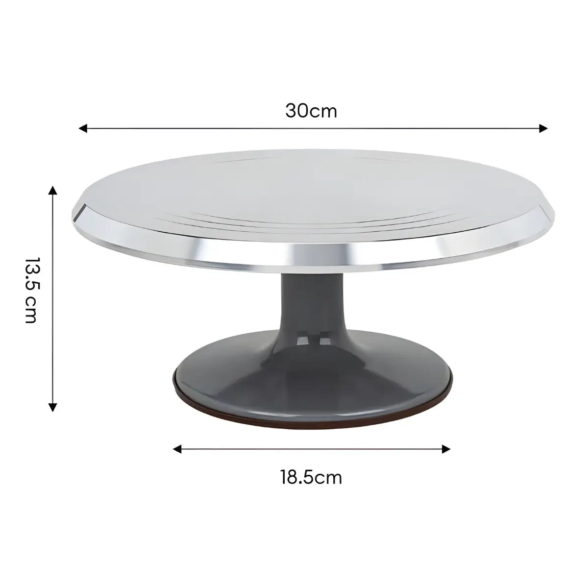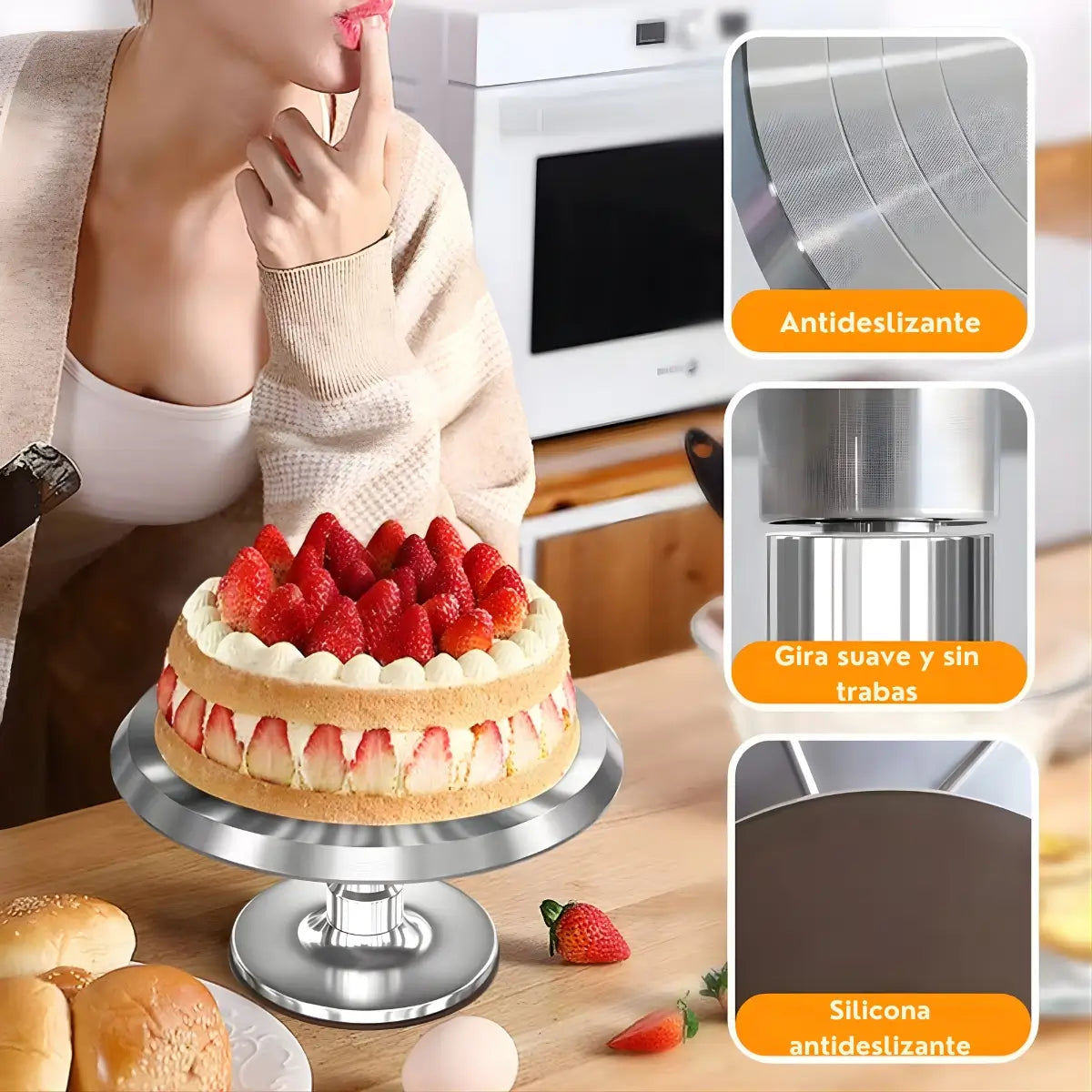 Haz que tus trabajos de repostería luzcan impecables con esta base giratoria para tortas, diseñada para brindar estabilidad, precisión y comodidad en cada decoración. Su plataforma de aluminio ofrece una superficie resistente, ligera y fácil de limpiar, perfecta para uso doméstico o profesional.