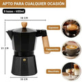 - Capacidad: 450 ml (equivalente a 9 tazas pequeñas de espresso)