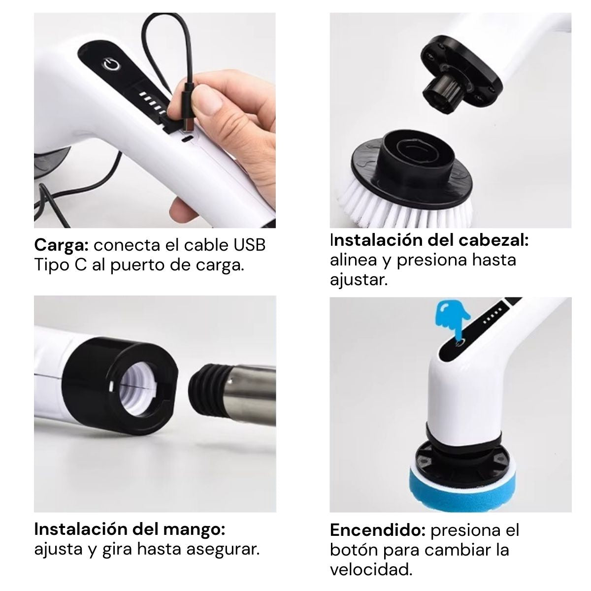 Es ideal para pisos, lavaderos, esquinas, juntas, superficies del baño y zonas de difícil acceso. Su mango extensible te permite limpiar cómodamente sin agacharte, mientras que su batería recargable te da libertad de movimiento sin cables.