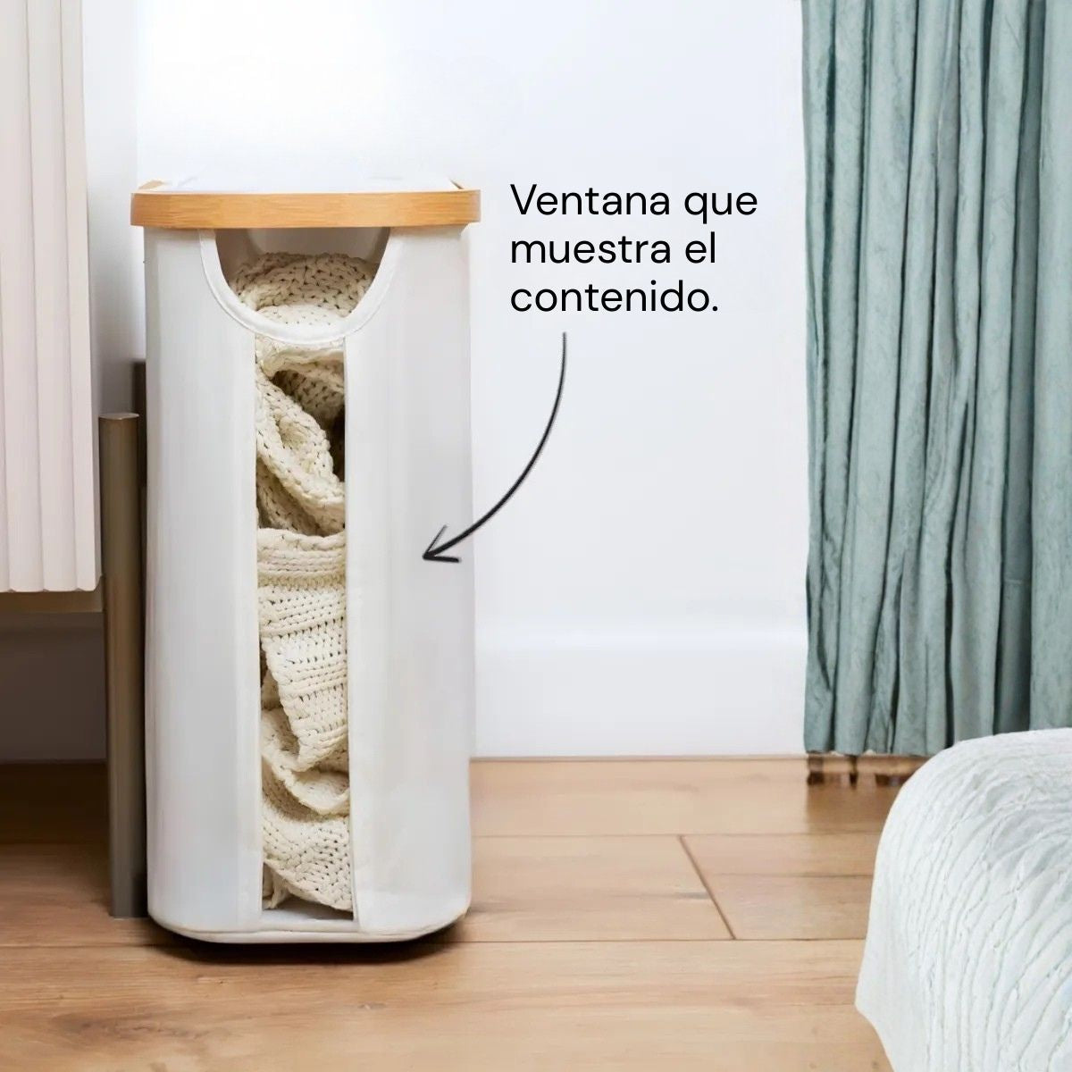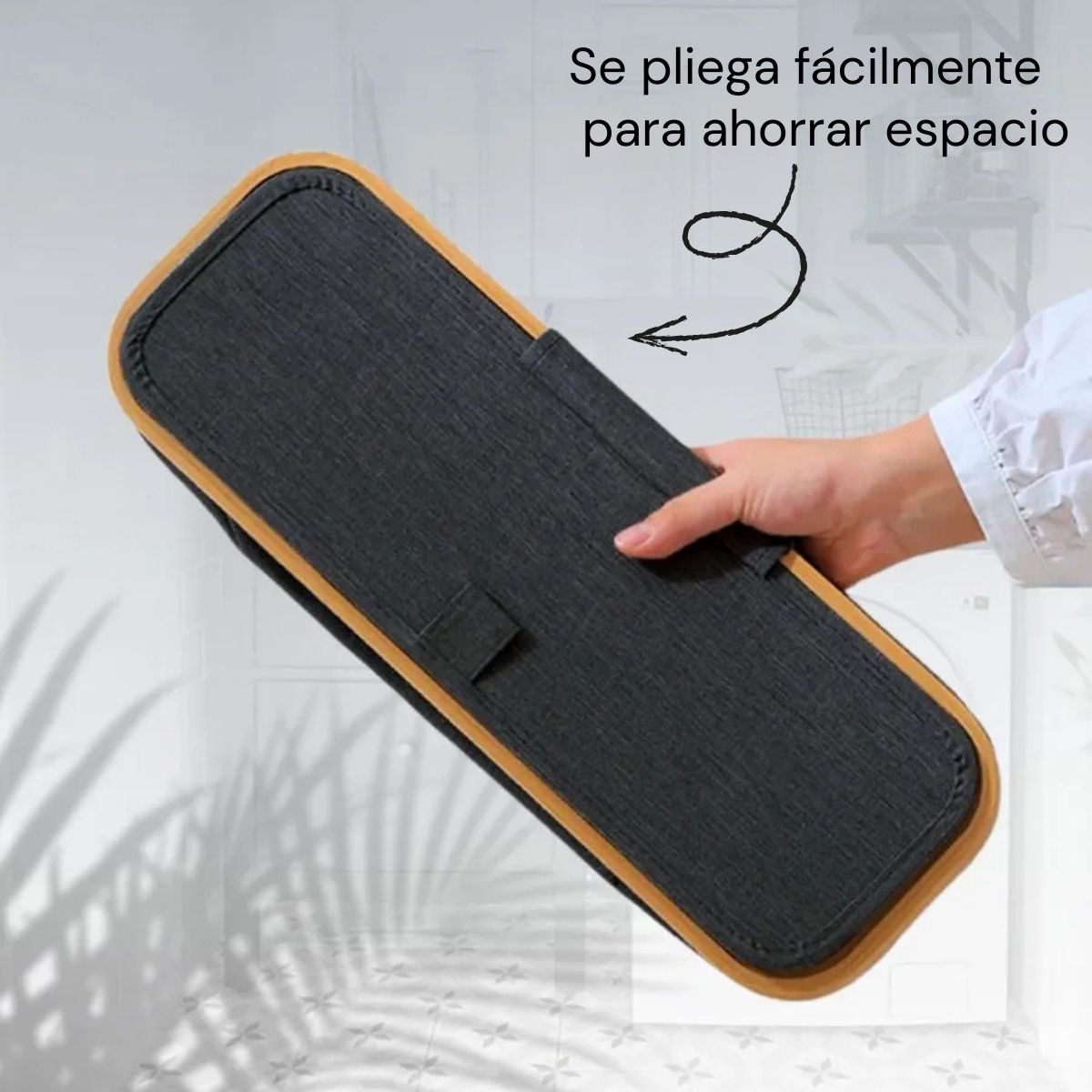 - Materiales: Tela resistente tipo poliéster + marco superior de bambú + plástico