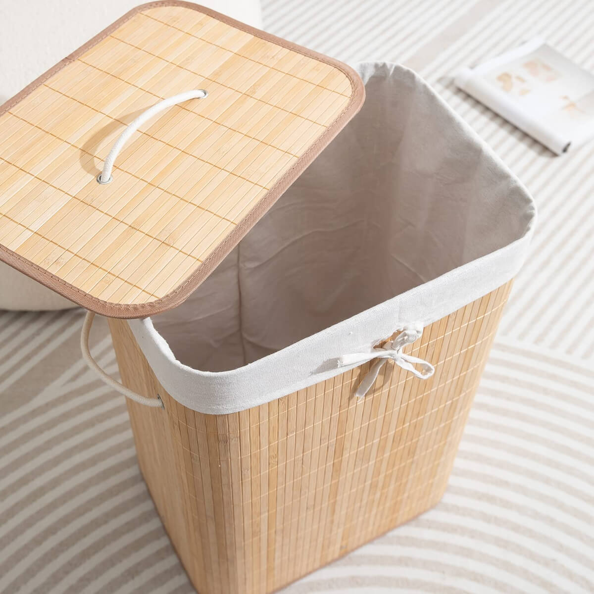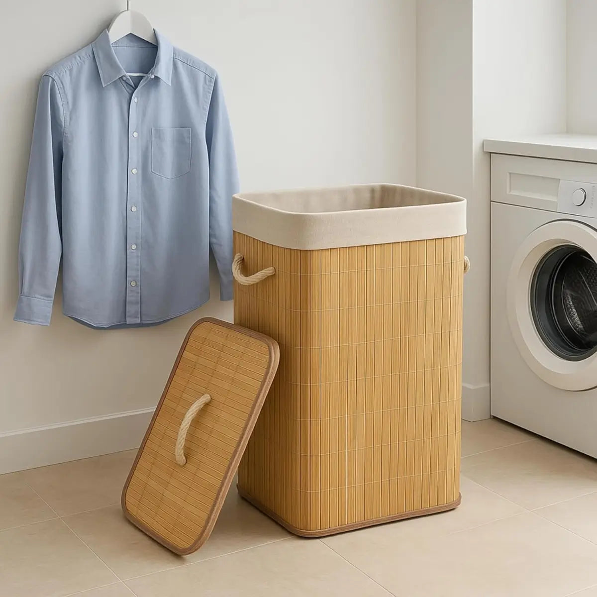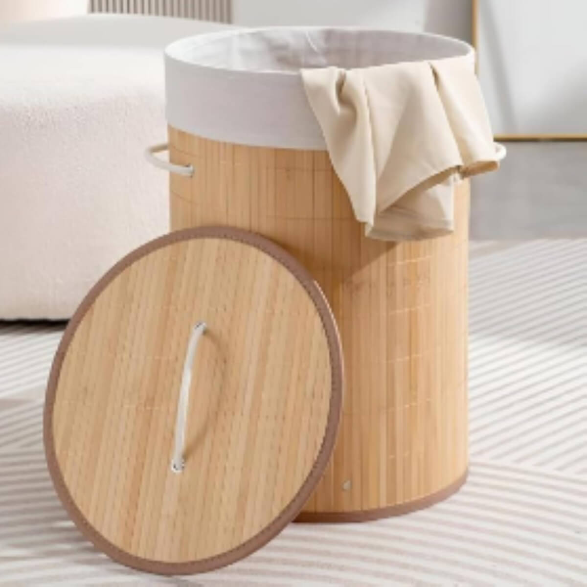 Cesto Organizador de Ropa con Tapa Bambú y Forro Interno
