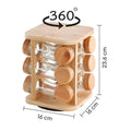 Incluye 12 frascos de vidrio resistentes con tapa de bambú y tapa interna perforada.