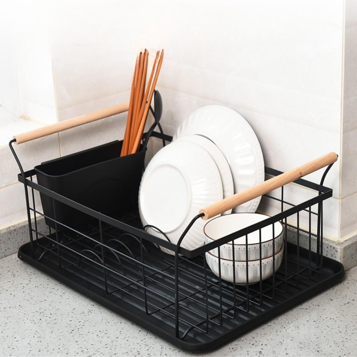 Mantén tu cocina organizada y seca con este práctico y elegante escurridor de platos, diseñado para ofrecer funcionalidad, resistencia y una presentación moderna que combina con cualquier estilo de cocina. Su estructura metálica con doble revestimiento evita la corrosión y garantiza un uso prolongado, mientras que los detalles en bambú aportan un toque cálido y decorativo.