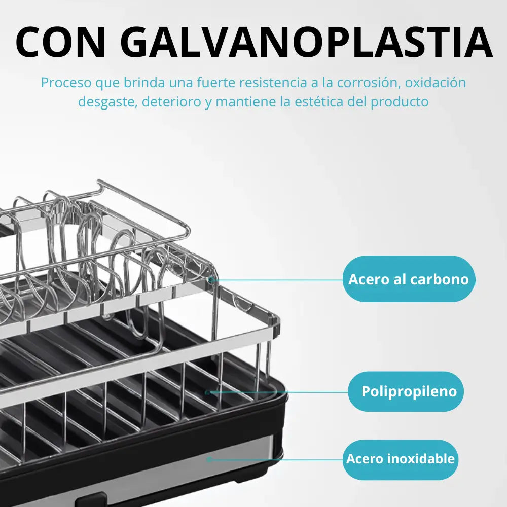 Organiza tu cocina con estilo y eficiencia con el escurridor de platos Camila de dos niveles. Su diseño moderno y práctico optimiza el espacio en la encimera, permitiendo secar platos, tazas y cubiertos de manera organizada y sin esfuerzo. Con su estructura extensible y soporte especial para copas, este escurridor garantiza que todos tus utensilios queden perfectamente alineados y sin acumulación de agua. ¡Haz que lavar los platos sea una tarea más simple y eficiente!