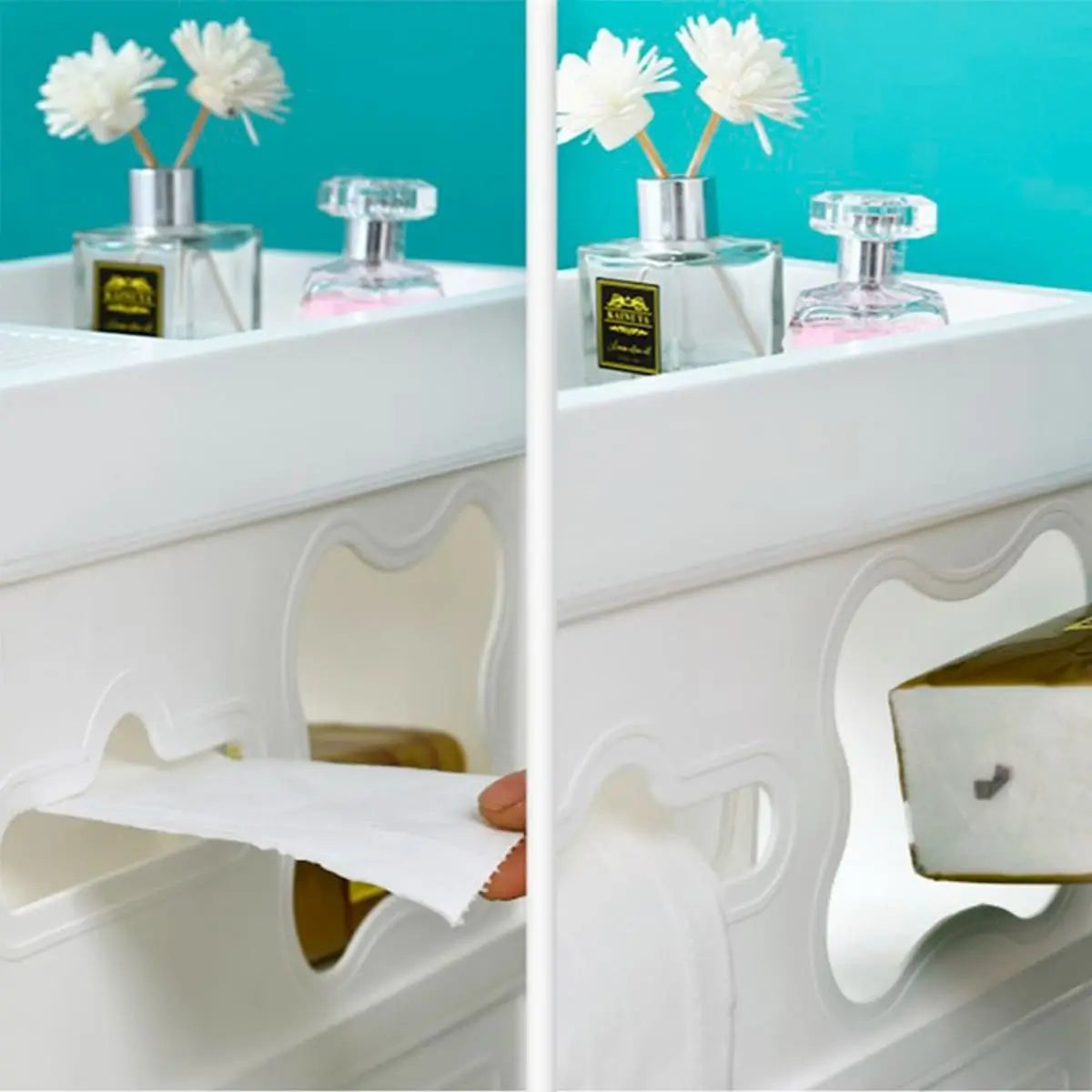 - Cuenta con orificios para papel higiénico y toallitas húmedas.