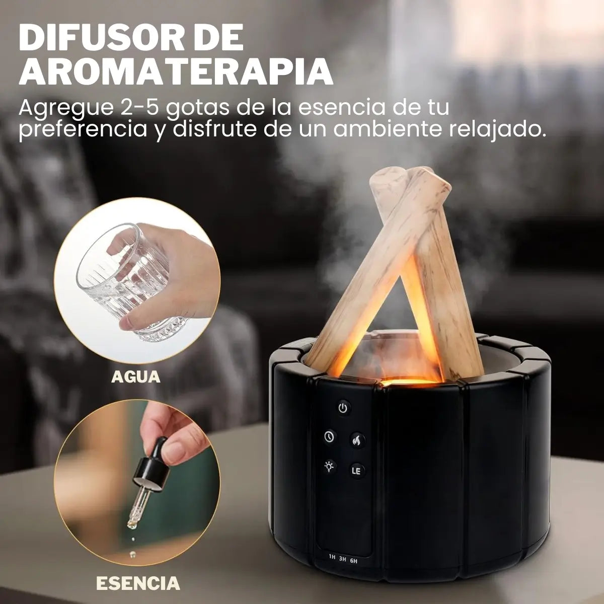 - Efecto de llama visual para un ambiente acogedor
