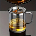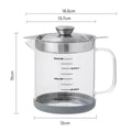 Material: Vidrio resistente al calor + colador y tapa de acero inoxidable 304 + base antideslizante de silicona.