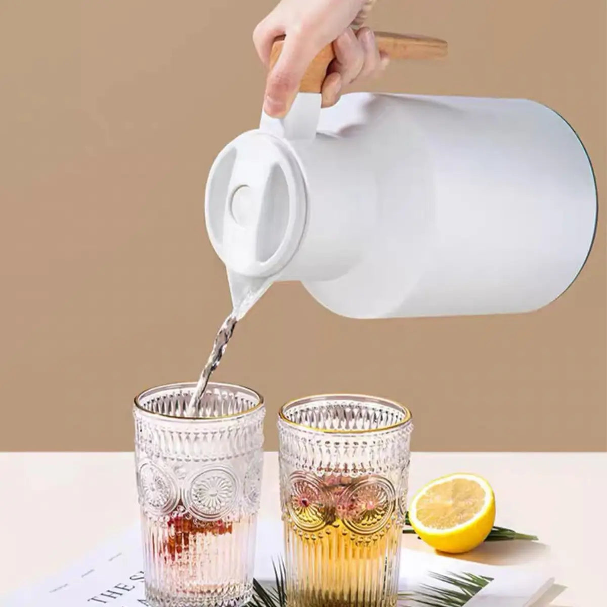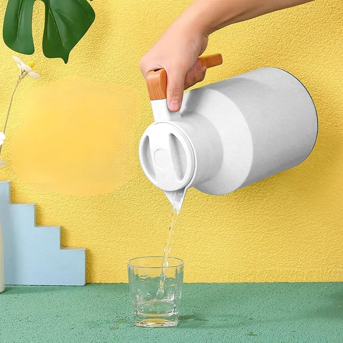 Disfruta tus bebidas siempre a la temperatura perfecta con esta jarra termo de 1 litro, diseñada para ofrecer estilo, practicidad y un excelente rendimiento térmico. Su exterior de PP resistente y su interior de vidrio térmico de alta calidad garantizan una conservación superior del calor y del frío, ideal para el hogar, la oficina o reuniones.
