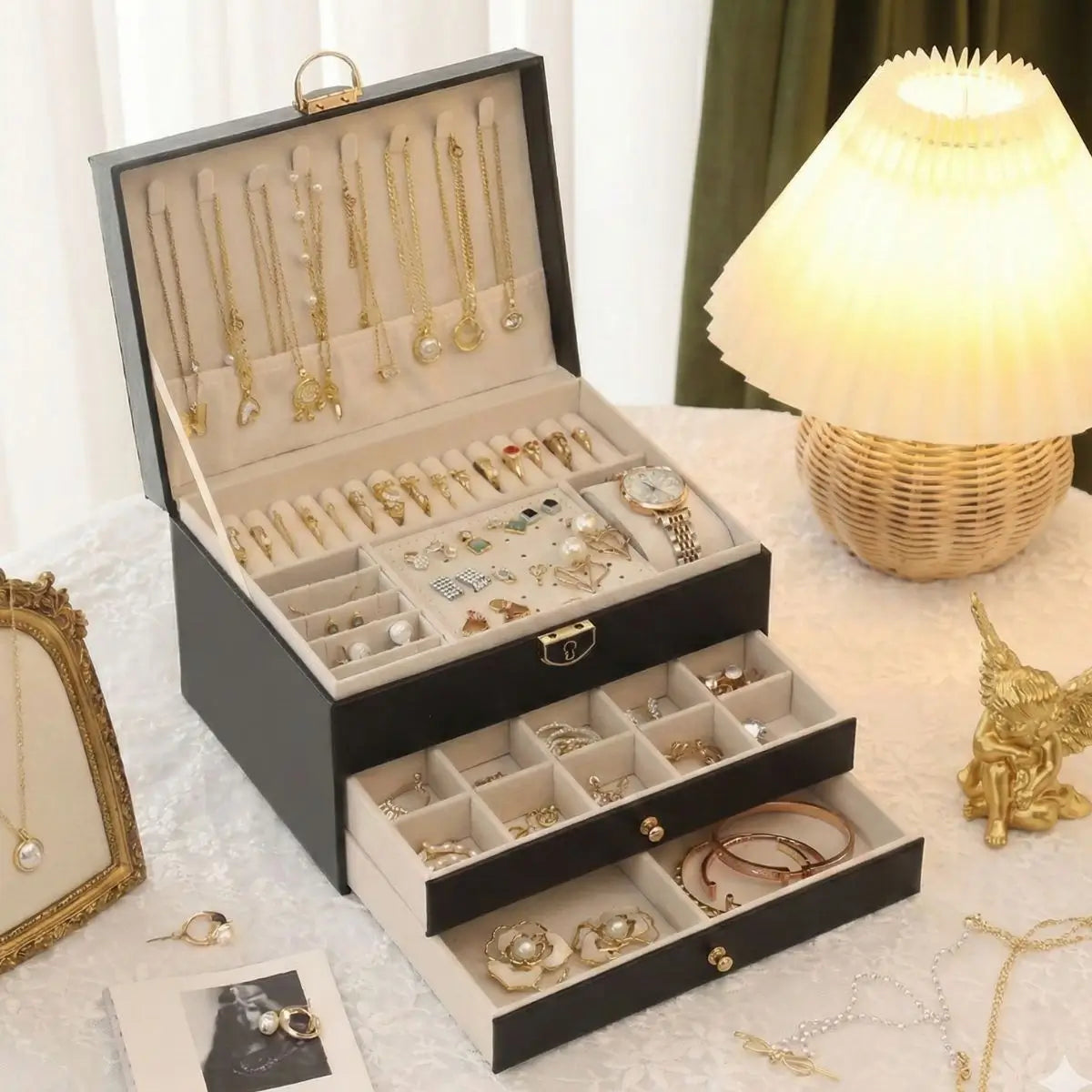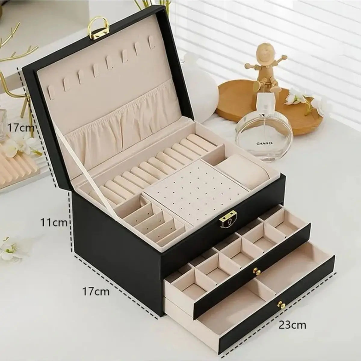 Mantén tus joyas ordenadas, protegidas y siempre a la vista con este organizador joyero elegante y funcional. Su diseño con múltiples compartimentos permite clasificar anillos, collares, pulseras y relojes sin enredos, mientras que su acabado sofisticado aporta un toque decorativo ideal para tocadores y cómodas. Es la solución perfecta para cuidar tus accesorios y mantener todo en su lugar de forma práctica y segura.