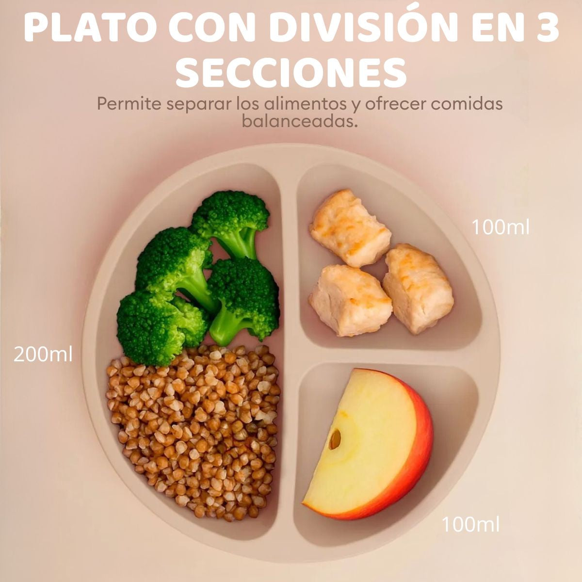 Plato con divisiones: Separa fácilmente los alimentos, ideal para bebés que están iniciando sólidos.