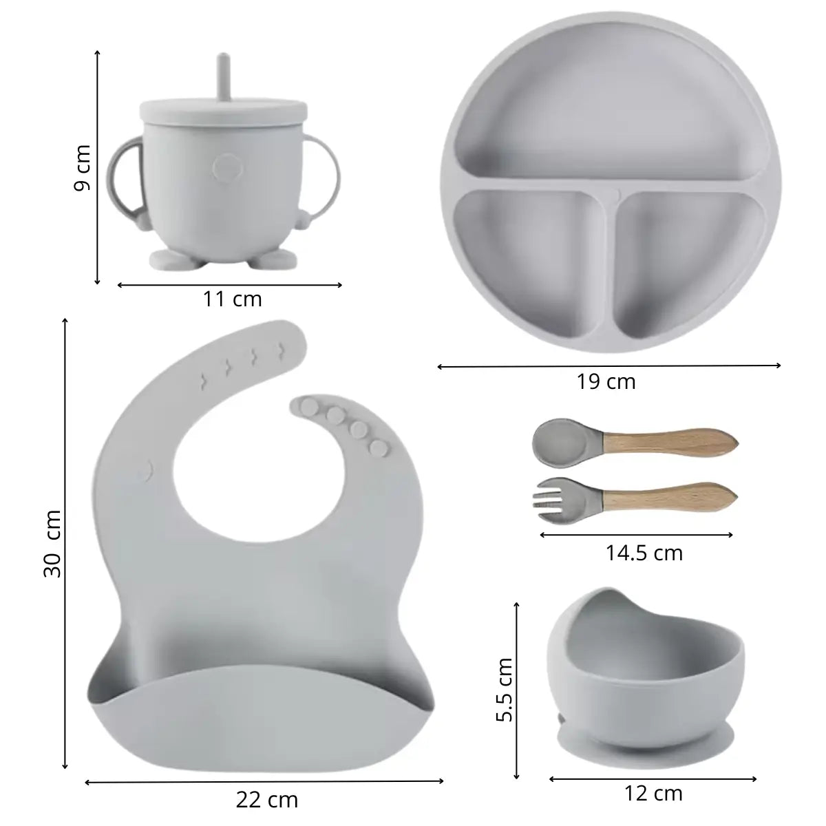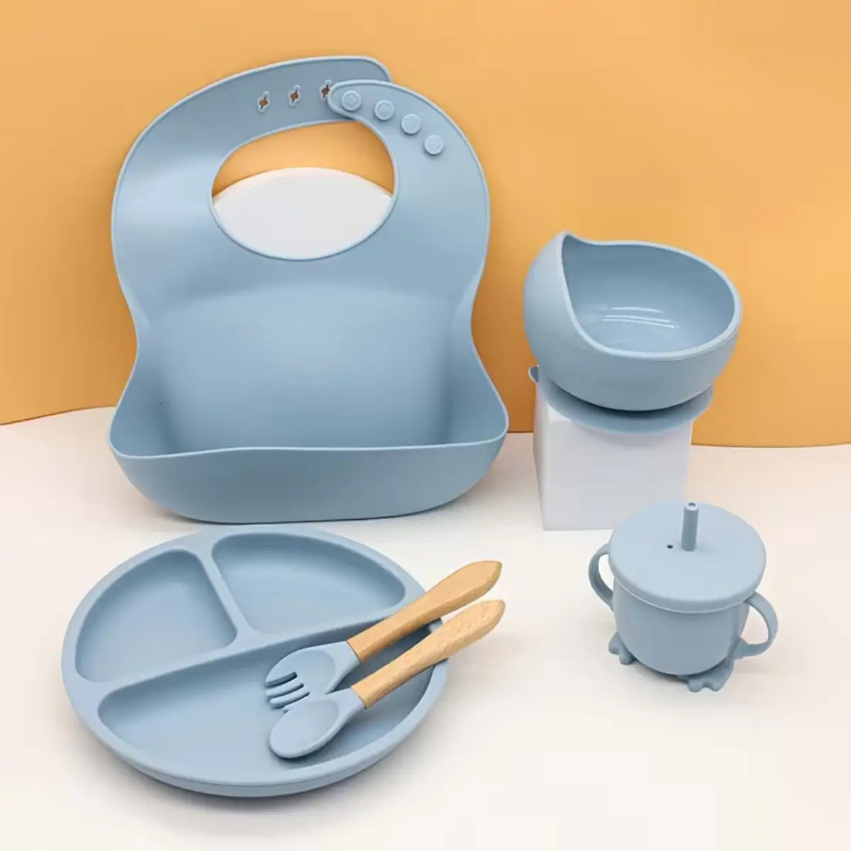 Este set premium de 5 piezas es perfecto para acompañar las primeras comidas de tu bebé, ofreciendo seguridad, comodidad y practicidad en cada uso. Fabricado en silicona alimentaria 100% segura y libre de BPA, es un kit diseñado para bebés a partir de los 6 meses, ideal para alimentación complementaria.