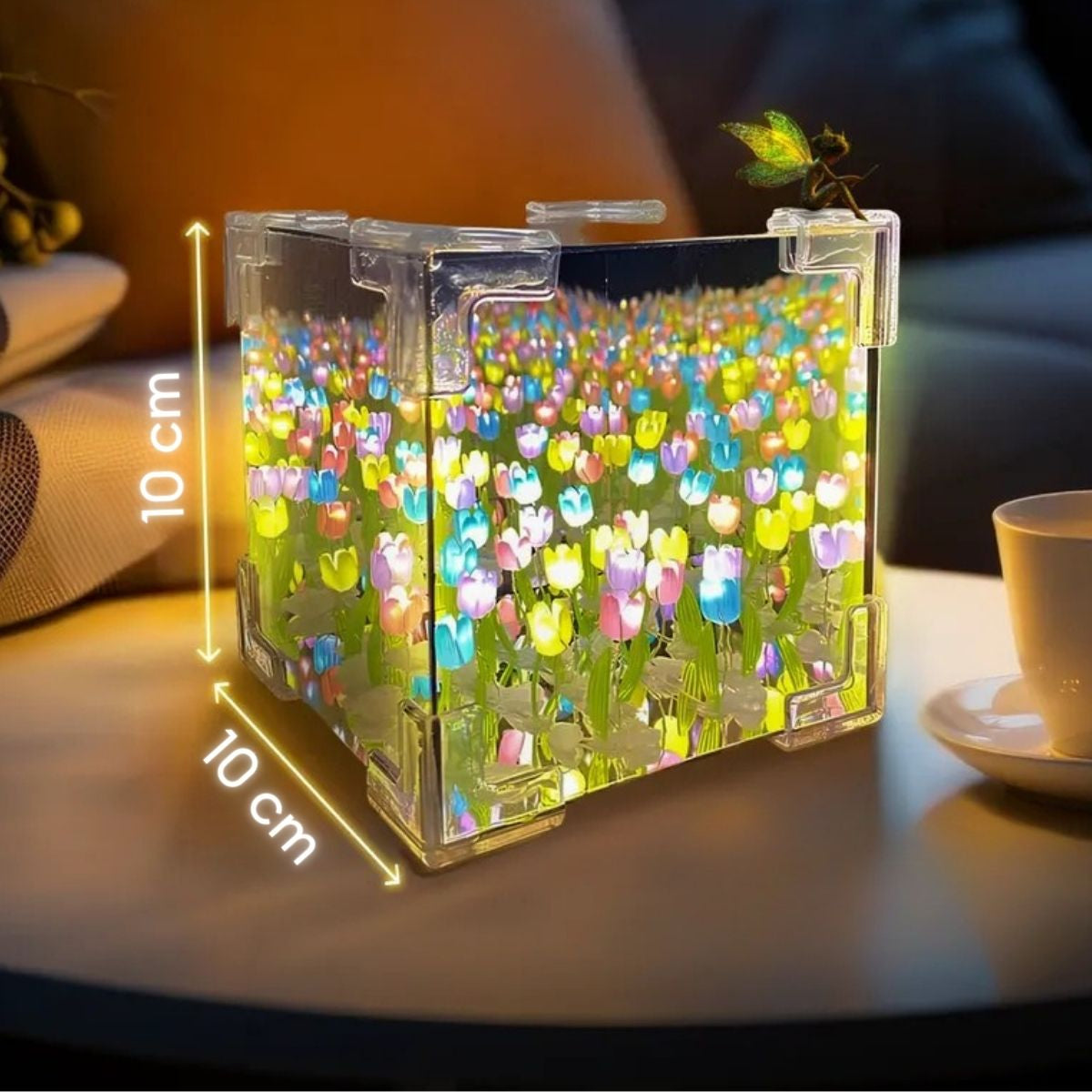Transforma cualquier espacio en un rincón cálido y especial con esta lámpara LED en forma de cubo con tulipanes y efecto infinito. Su diseño crea una sensación visual profunda y envolvente, ideal para decorar dormitorios, salas o escritorios. Emite una luz cálida y suave que aporta calma, romanticismo y un toque moderno sin necesidad de cables.