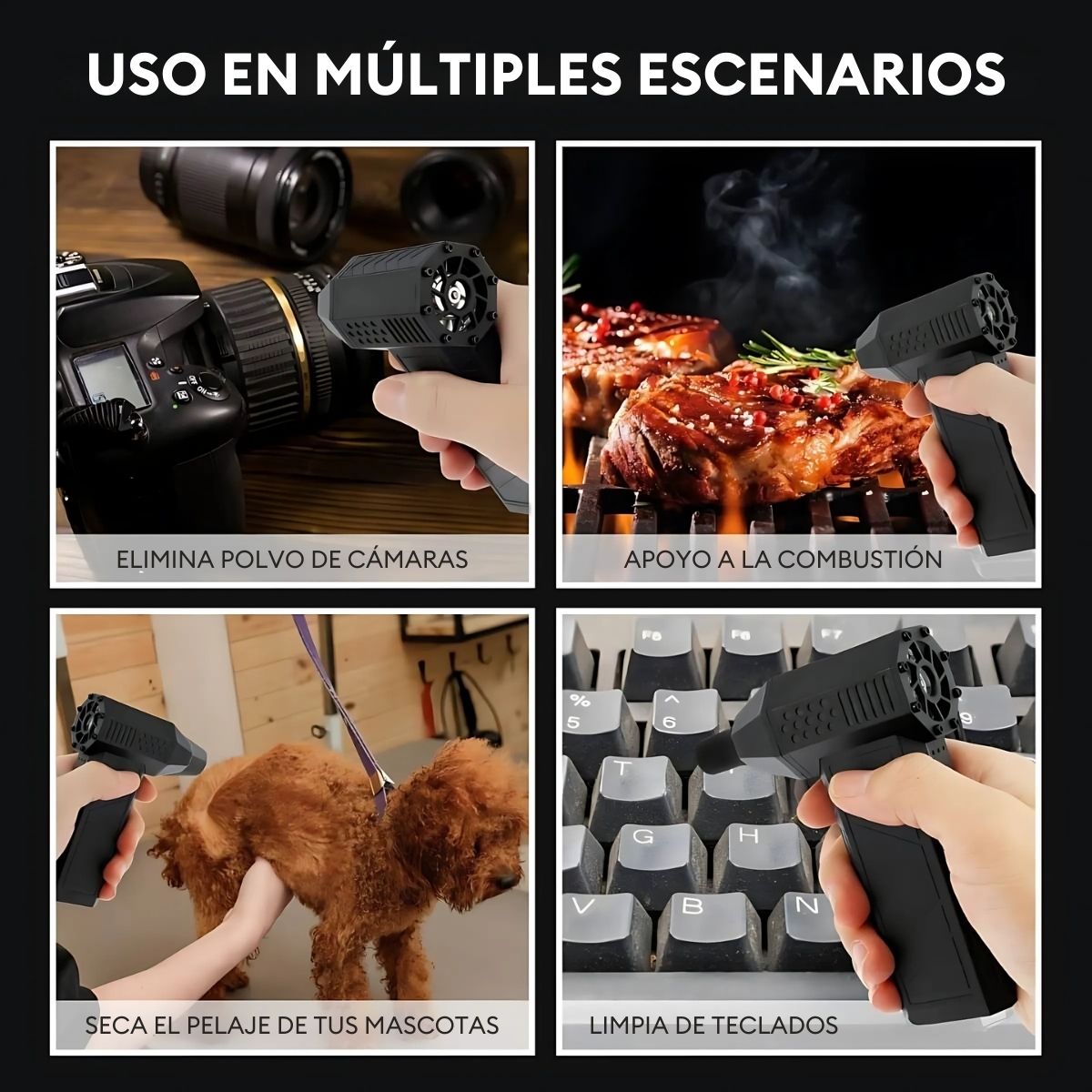 Mantén todo limpio y libre de polvo con el Mini Soplador Portátil con Linterna LED. Su motor sin escobillas de alta velocidad ofrece un flujo de aire potente para limpiar teclados, rincones, equipos electrónicos y más. Compacto, ergonómico y con carga rápida USB tipo C, incluye boquilla desmontable y linterna LED inferior para trabajar incluso en zonas oscuras. ¡La herramienta práctica que combina potencia, comodidad y versatilidad en un solo dispositivo!