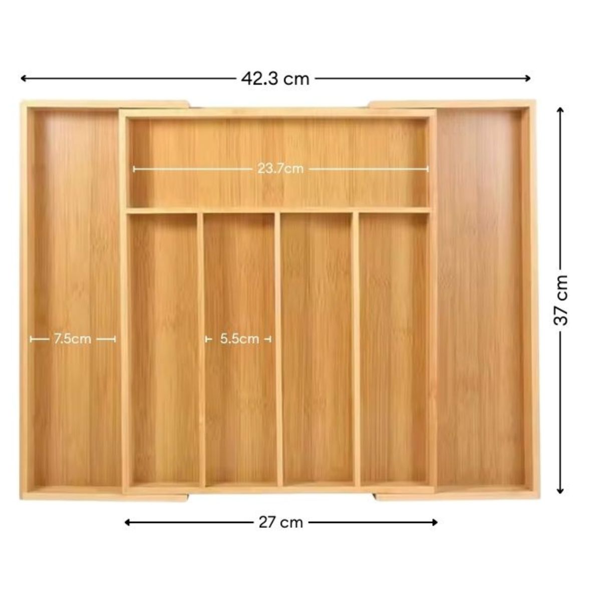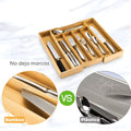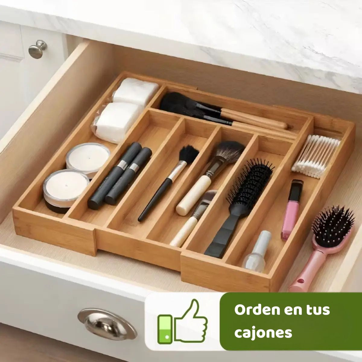 Mantén tus cajones siempre ordenados con este organizador de bambú natural. Su diseño extensible se adapta a diferentes tamaños de cajones, permitiendo crear entre 5 y 7 divisiones para cubiertos, utensilios o accesorios pequeños. Ideal para cocinas modernas y amantes del orden.