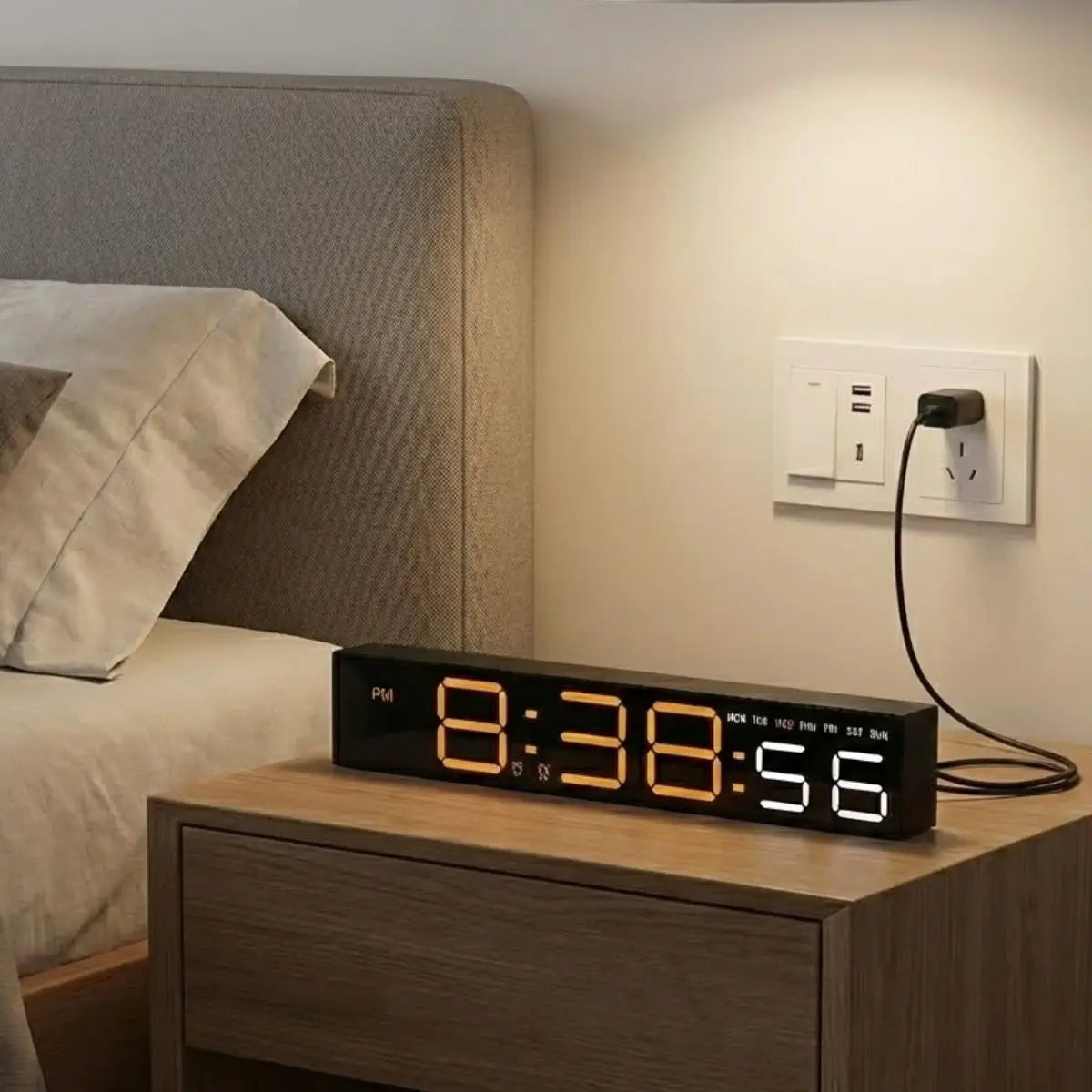 Dale un toque moderno y funcional a tu espacio con este reloj digital LED de diseño rítmico. Su pantalla de números grandes y brillantes permite una lectura clara de la hora incluso a distancia, ideal para dormitorios, escritorios u oficinas.