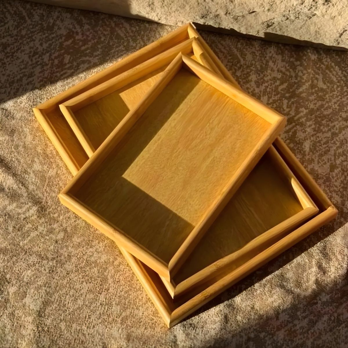 Organiza, decora y sirve con estilo gracias a este set de bandejas de madera, perfectas para la cocina, sala, comedor o área de trabajo. Su diseño elegante y funcional las convierte en un accesorio imprescindible en cualquier hogar.