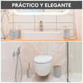 Renueva tu baño con estilo con el Set de Baño Aura de 6 piezas. Su diseño moderno y compacto se adapta a espacios pequeños sin perder elegancia. Incluye todo lo necesario: tacho, escobilla, dispensador, vaso, portacepillos y jabonera. Ideal para baños minimalistas. ¡Funcionalidad y estética en un solo set!