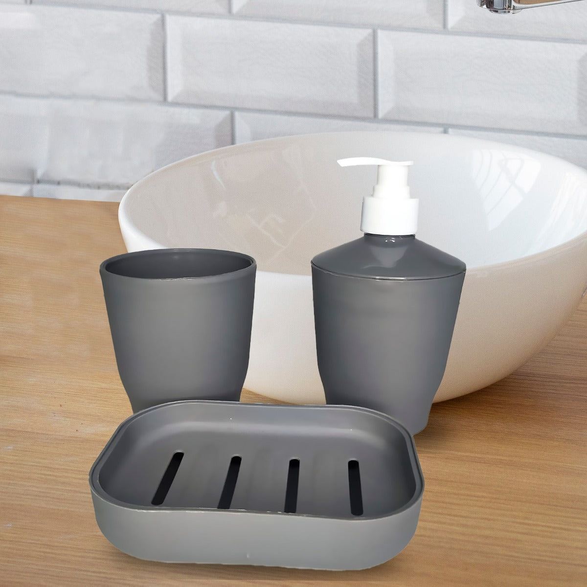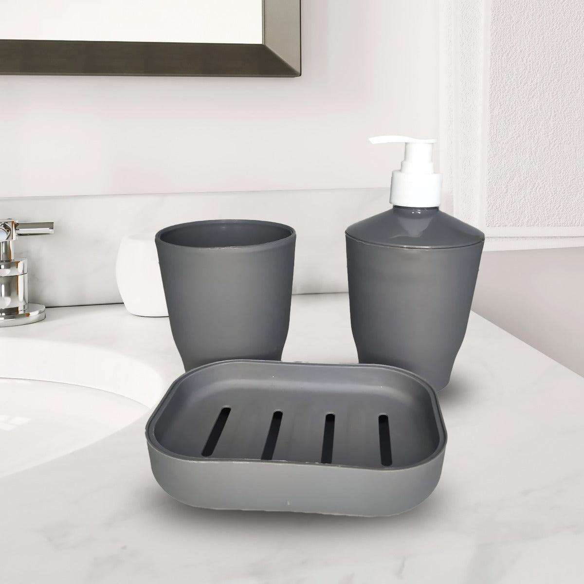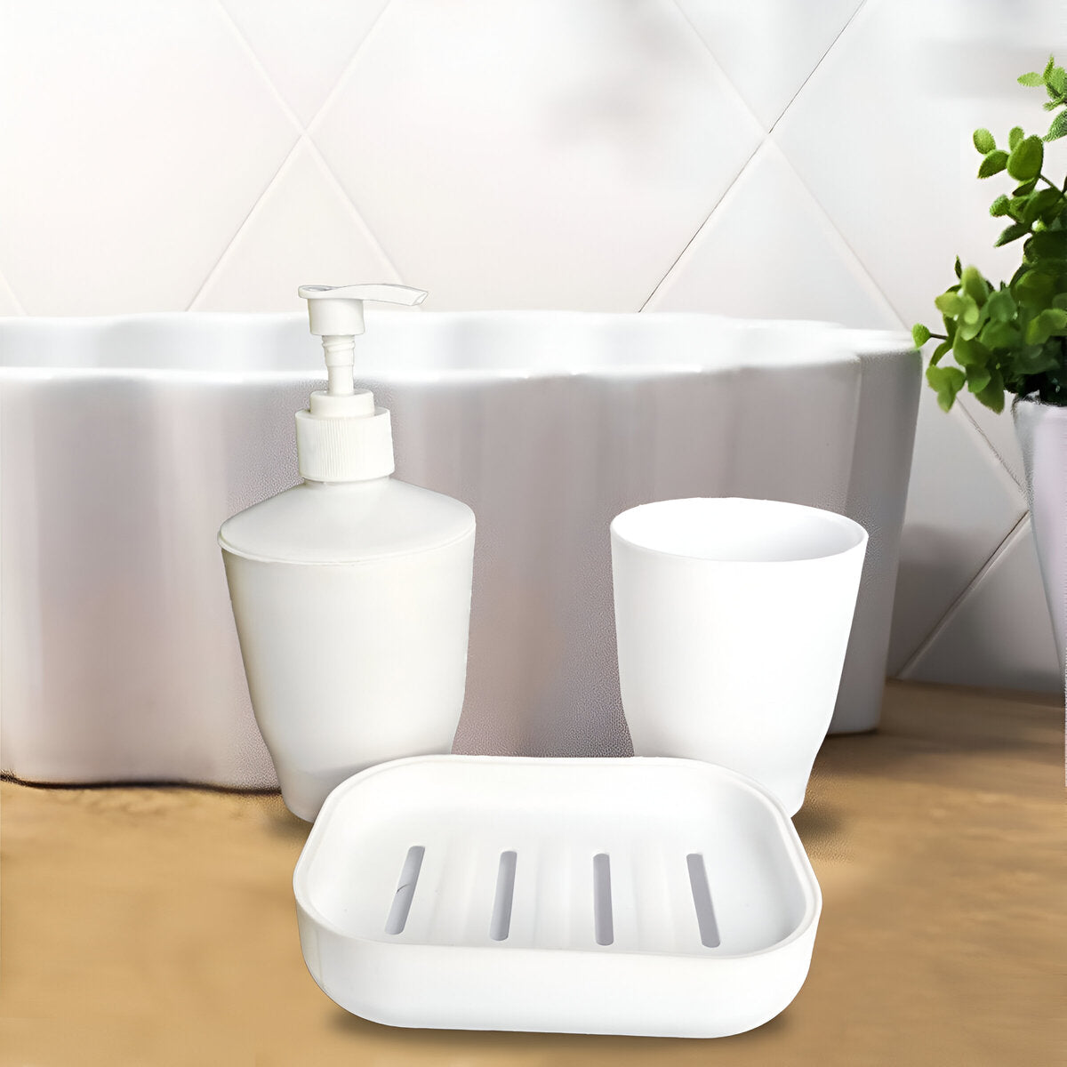 Transforma tu baño en un espacio organizado y elegante con nuestro Set Organizador de Baño. Este conjunto combina funcionalidad y estilo en tres piezas coordinadas para mantener tus productos de cuidado personal ordenados y a tu alcance. La jabonera mantiene tu jabón limpio y seco, el dispensador facilita la aplicación de líquidos, y el vaso es perfecto para enjuagar o guardar cepillos y peines.