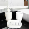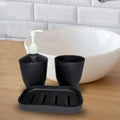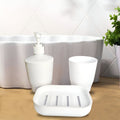 - Paquete incluye un dispensador de jabón líquido, un vaso de enjuague y una jabonera.