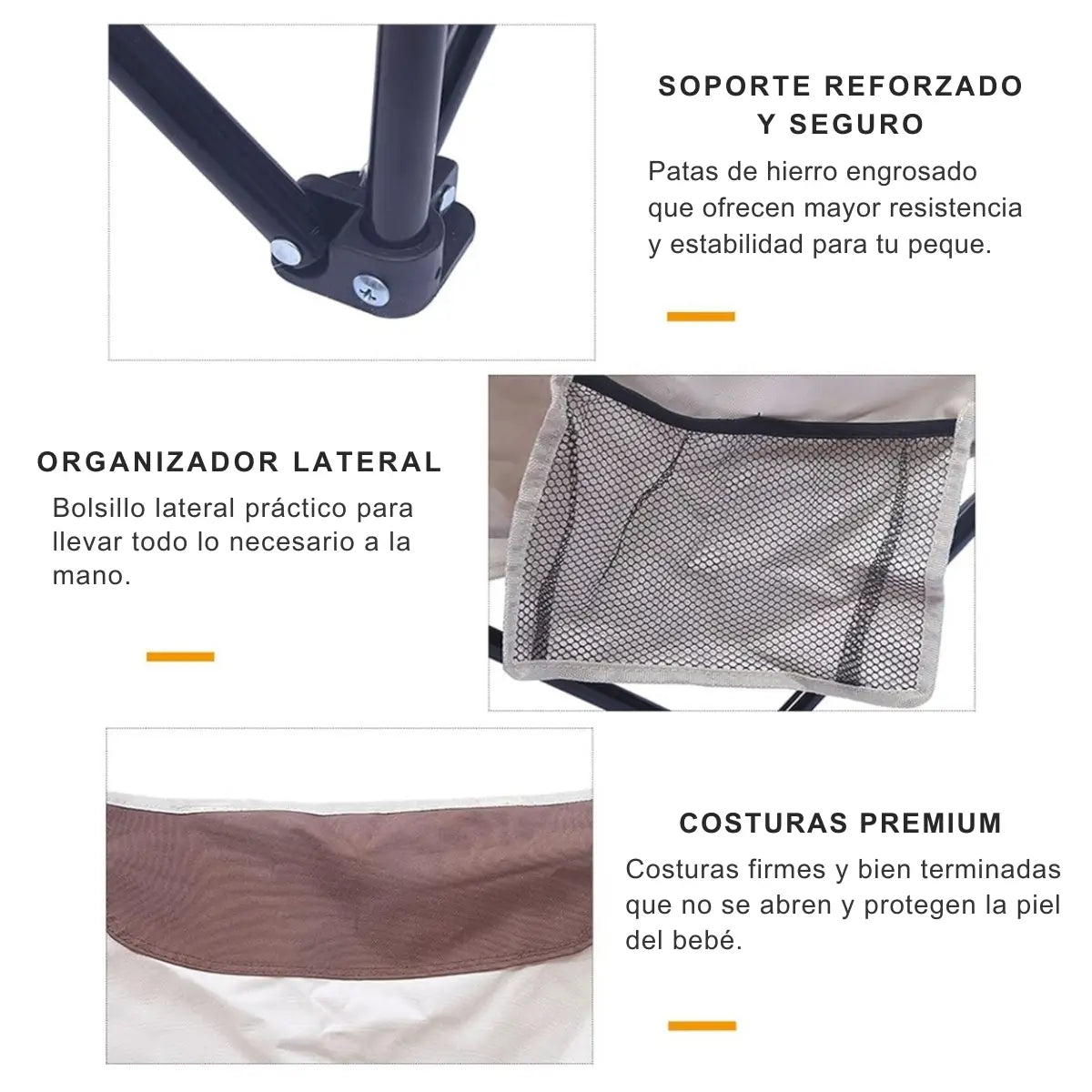 - Comodidad: Tela resistente y estructura firme para sentarse por largos periodos