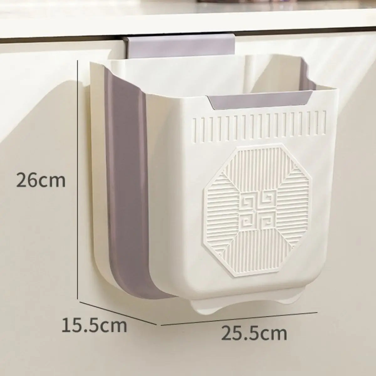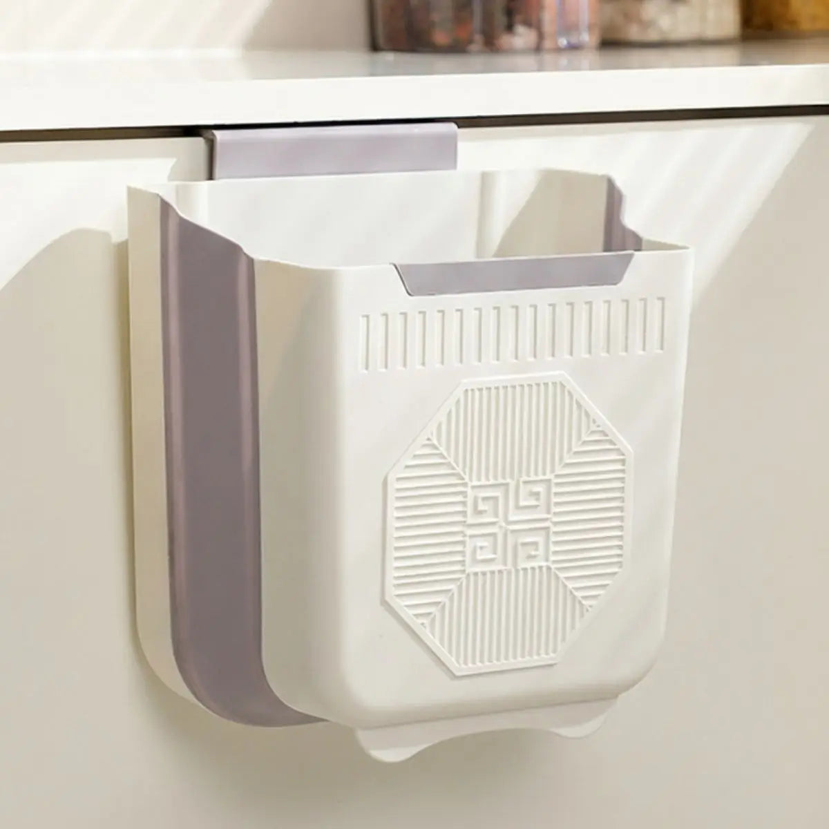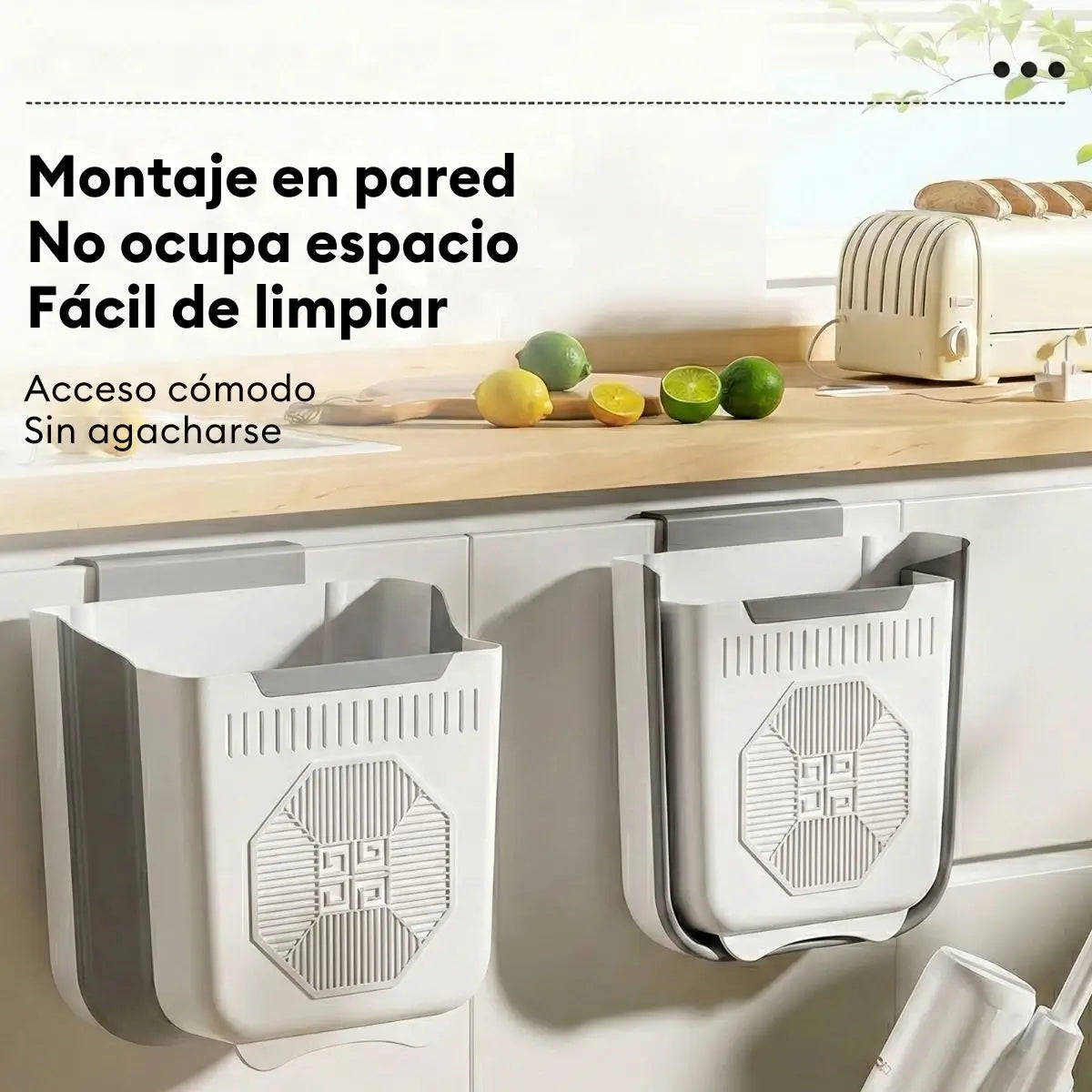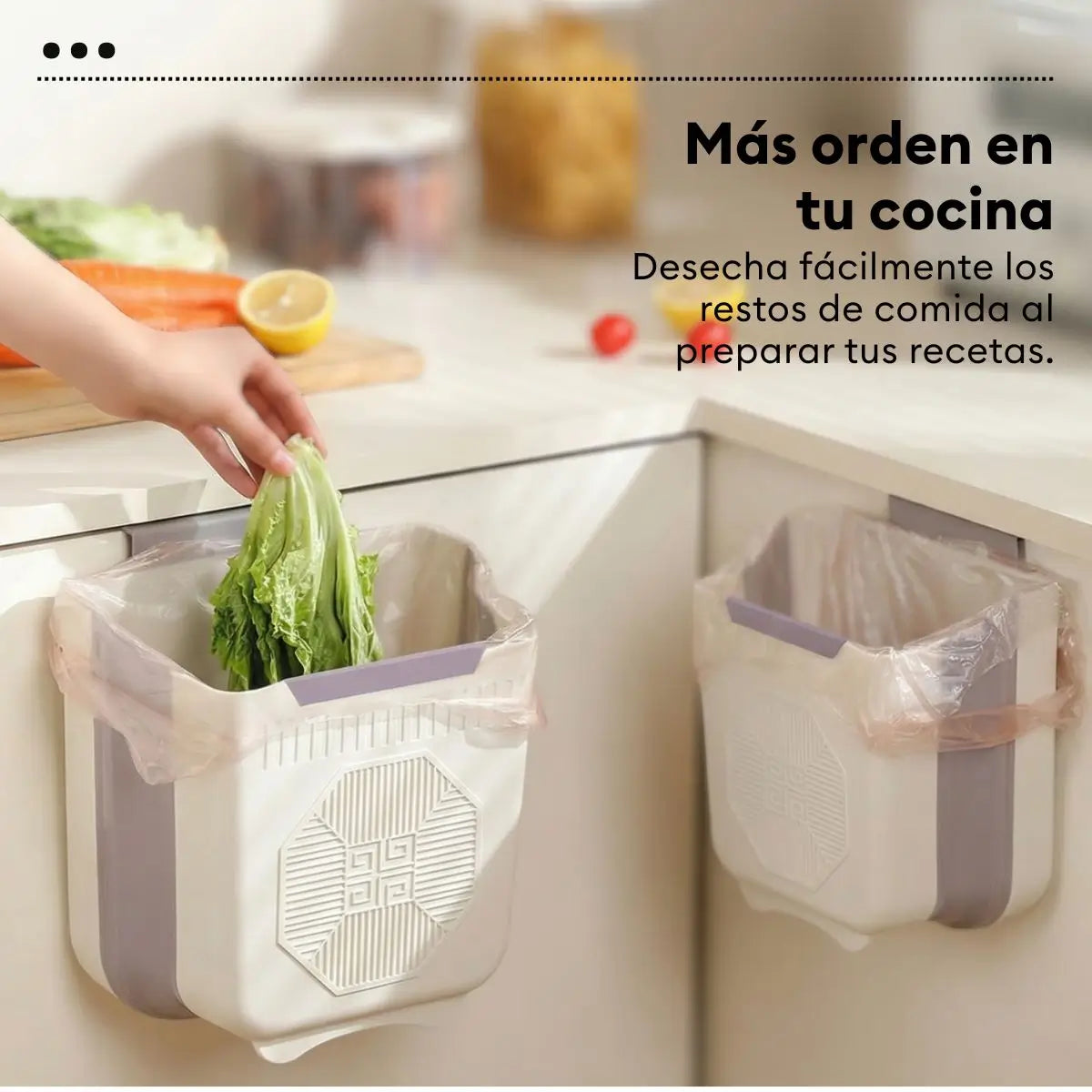 Este tacho de basura plegable se adapta fácilmente a puertas de gabinetes o superficies lisas, permitiéndote desechar residuos de forma cómoda mientras cocinas, limpias o realizas tus actividades diarias.