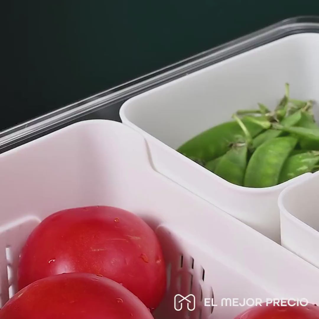 Descubre la frescura y la organización en su máxima expresión con nuestro Contenedor Hermético para Vegetales. Equipado con cuatro divisiones escurridoras internas, este contenedor redefine la forma en que almacena y mantiene tus vegetales y demás alimentos.