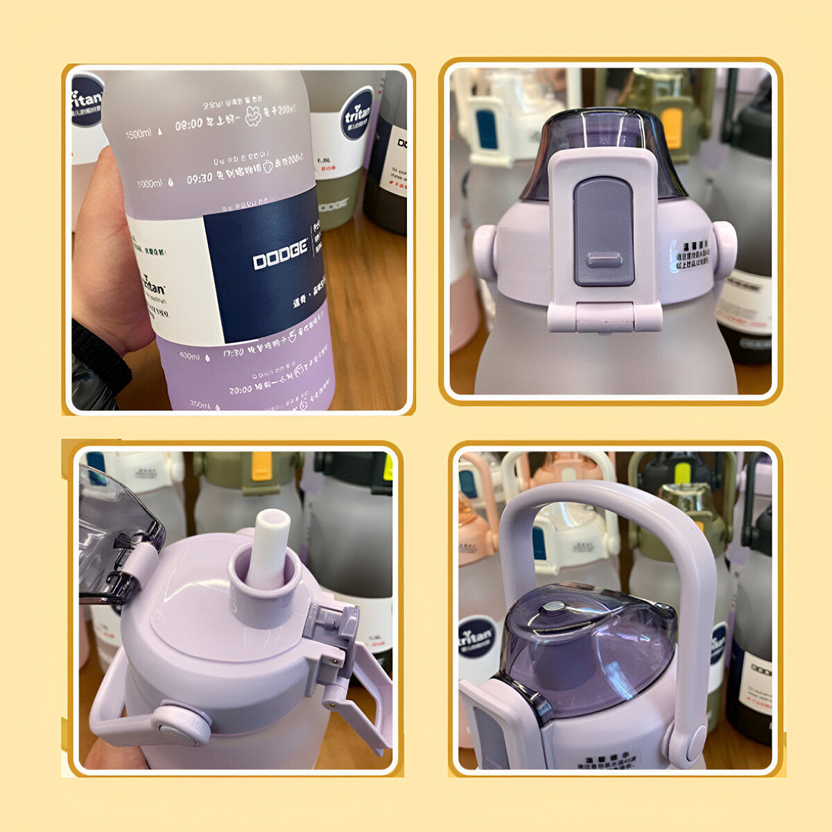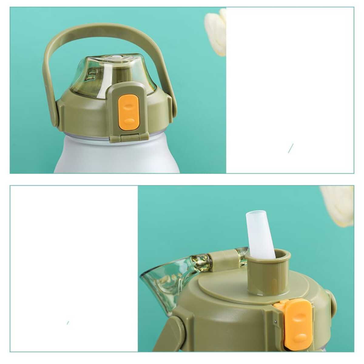 Boca ancha de la botella, fácil de limpiar, hay un anillo de silicona en la tapa para evitar fugas. La tapa de la botella está bien cerrada, por lo que el agua no se filtre, material resistente de calidad y duradero.