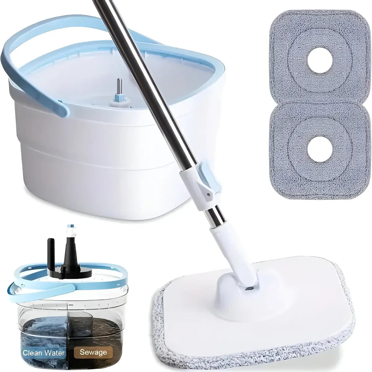 Limpie cada rincón con facilidad con este trapeador de diseño cuadrado. Su balde con doble compartimiento separa el agua limpia de la sucia, e incluye escurrido práctico. Mango ajustable y repuesto de microfibra incluidos. Ideal para una limpieza eficiente y sin esfuerzo.